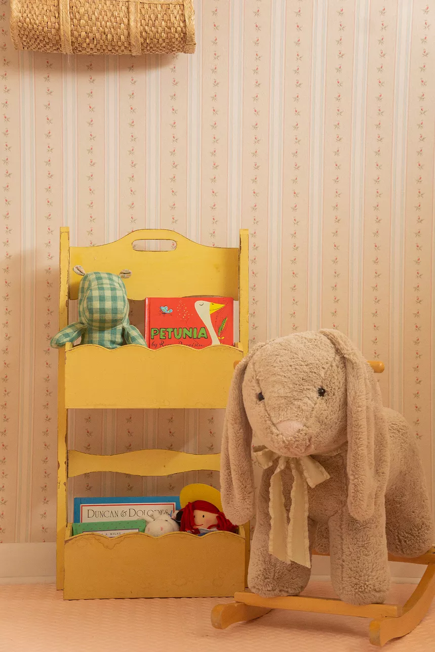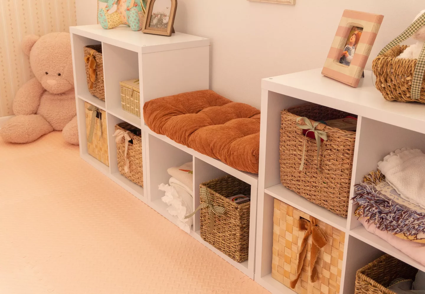 This space was created for a 1 year old who was outgrowing playing in the living room and nursery. The parents wanted a singular space to store all of her toys and give the opportunity for larger toys. I really wanted this room to be completely centered around Mila and what her development was at the time. I.E. everything is low enough for her to grab and the reading nook featured a pad that she could safely get on and off herself.