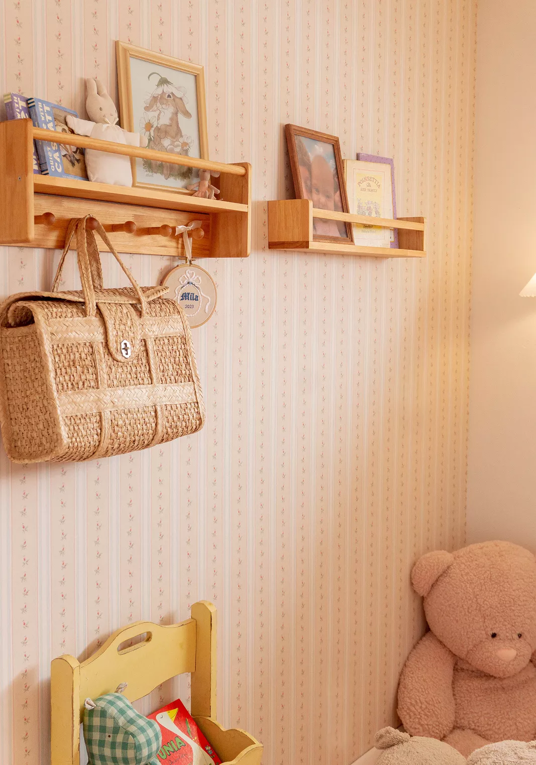 The wallpaper took hours and hours of searching but ended up being perfect and the backbone of the entire project. With a mixture of textures and pastel colors this room came to life and feels warm and inviting.
